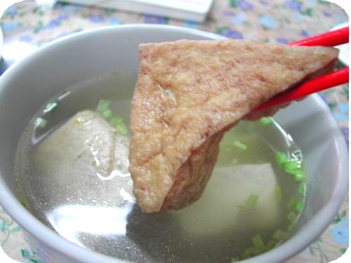 有板豆腐一塊、油豆腐一塊、筍子數塊、豆皮一片